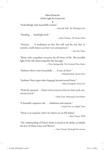 <b>*NOW A NETFLIX LIMITED SERIES—from producer and director Shawn Levy <i>(Stranger Things)</i> starring Mark Ruffalo, Hugh Laurie, and newcomer Aria Mia Loberti*</b><br> <br><b>Winner of the Pulitzer Prize and National Book Award finalist, the beloved instant <i>New York Times</i> bestseller and <i>New York Times Book Review </i>Top 10 Book about a blind French girl and a German boy whose paths collide in occupied France as both try to survive the devastation of World War II.</b><br><br>Marie-L...